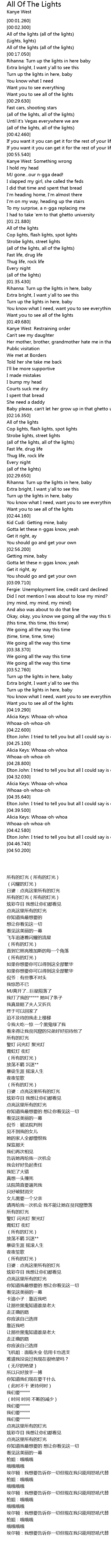 Kanye West - All Of The Lights ft. Rihanna, Kid Cudi, Best of Kanye West: https://goo.gl/2FXUVW Subscribe here: https://goo.gl/AgJE59 WARNING: This video has been identified by . We Have got 11 picture about All Of The Lights Lyrics images, photos, pictures, backgrounds, and more. In such page, we additionally have number of images out there. Such as png, jpg, animated gifs, pic art, symbol, blackandwhite, images, etc. "All of the lights - Lyrics", Lyrics to all of the lights By: Kanye West & Rihanna.. "Kanye West- All of the lights (LYRICS) HQ", Kanye West- All of the lights ft Rihanna , Kid Cudi , Fergie, Elton John , & Alicia Keys w/lyrics On Screen...